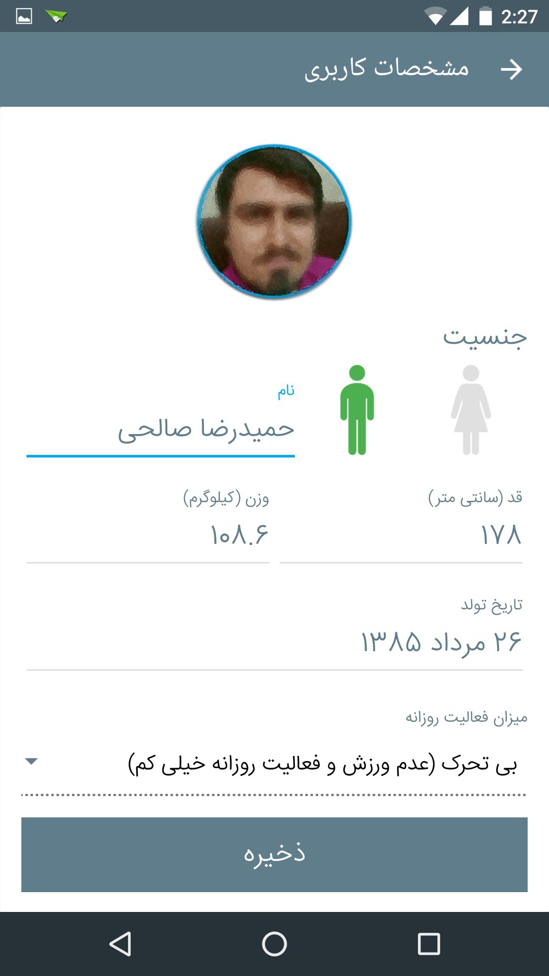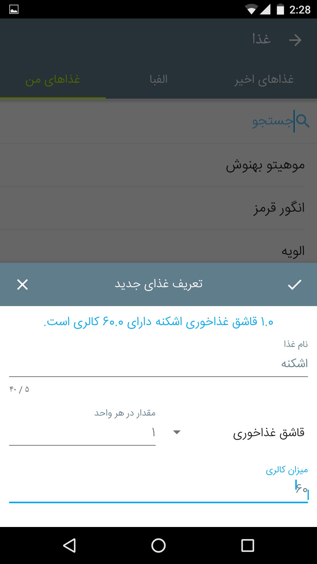 افزودن غذا و فعالیت، محاسبه میزان کالری دریافتی و مصرفی